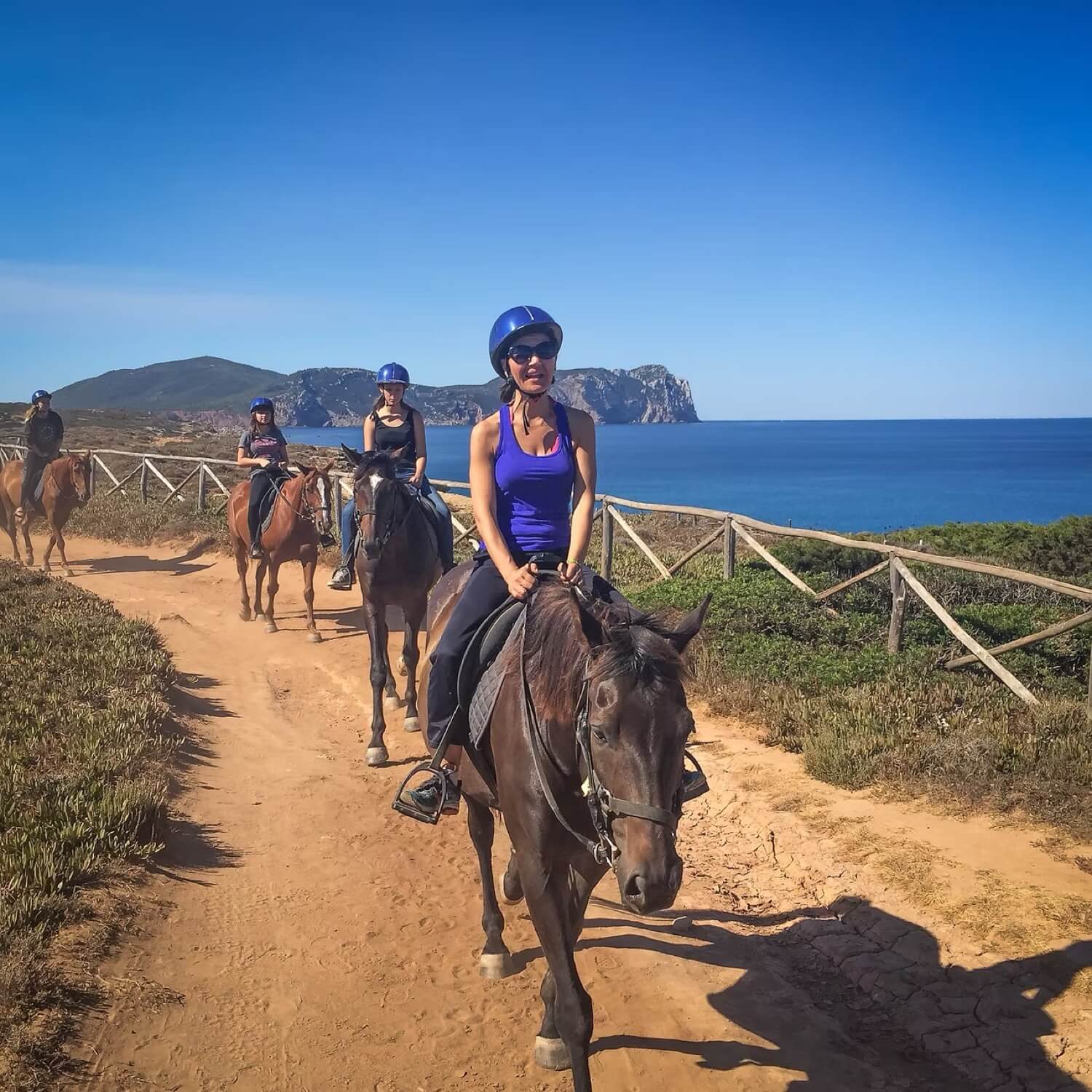 The center, managed by Michele Murrocu, houses 18 horses, predominantly Anglo-Arab Sardinians, trained for equestrian tourism and ideal for accompanying guests along panoramic routes, coastal trails, and beach stretches. Before each departure, a brief introductory lesson with horse trial is conducted to ensure safety, familiarity with the equipment, and a calm approach to the excursion.